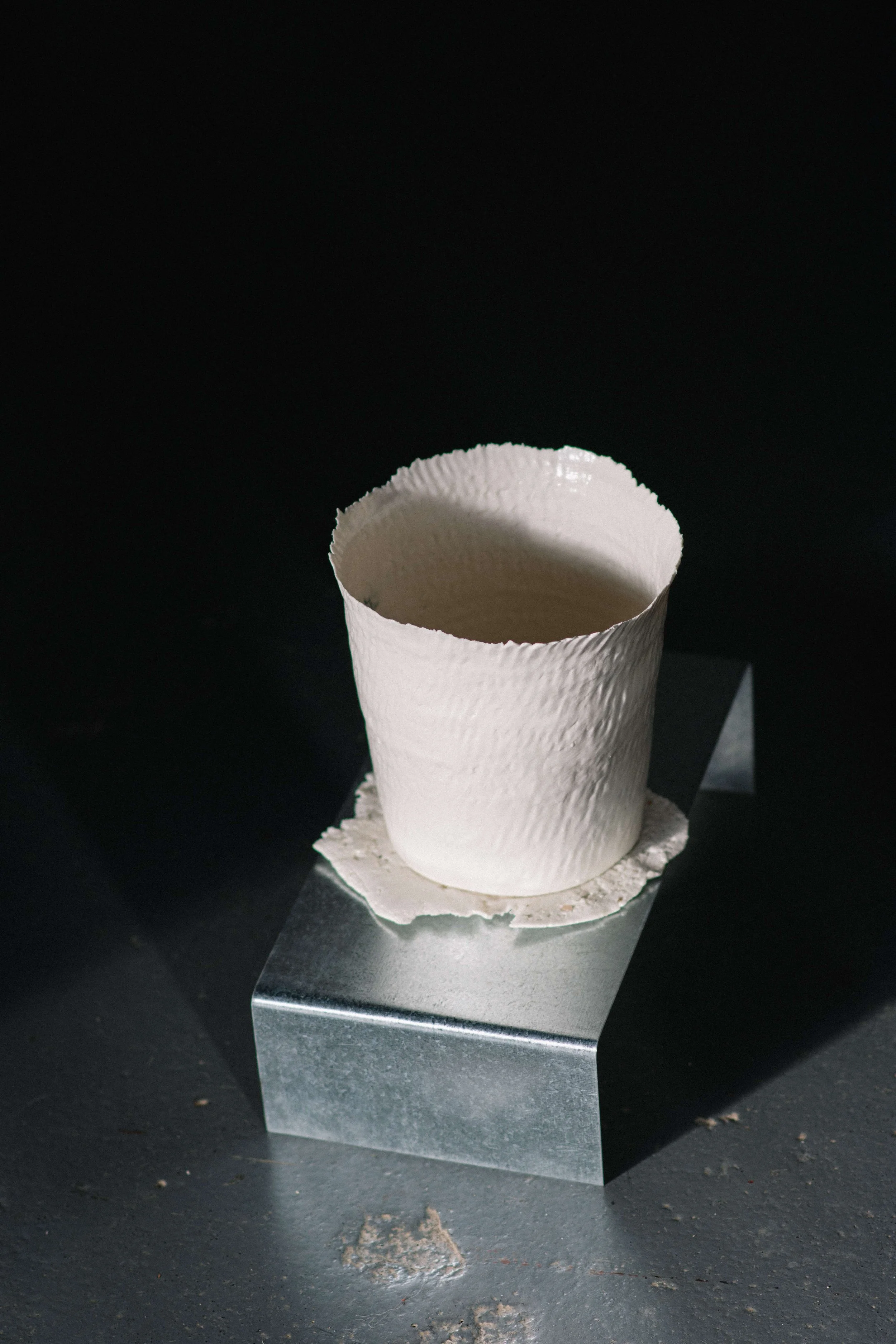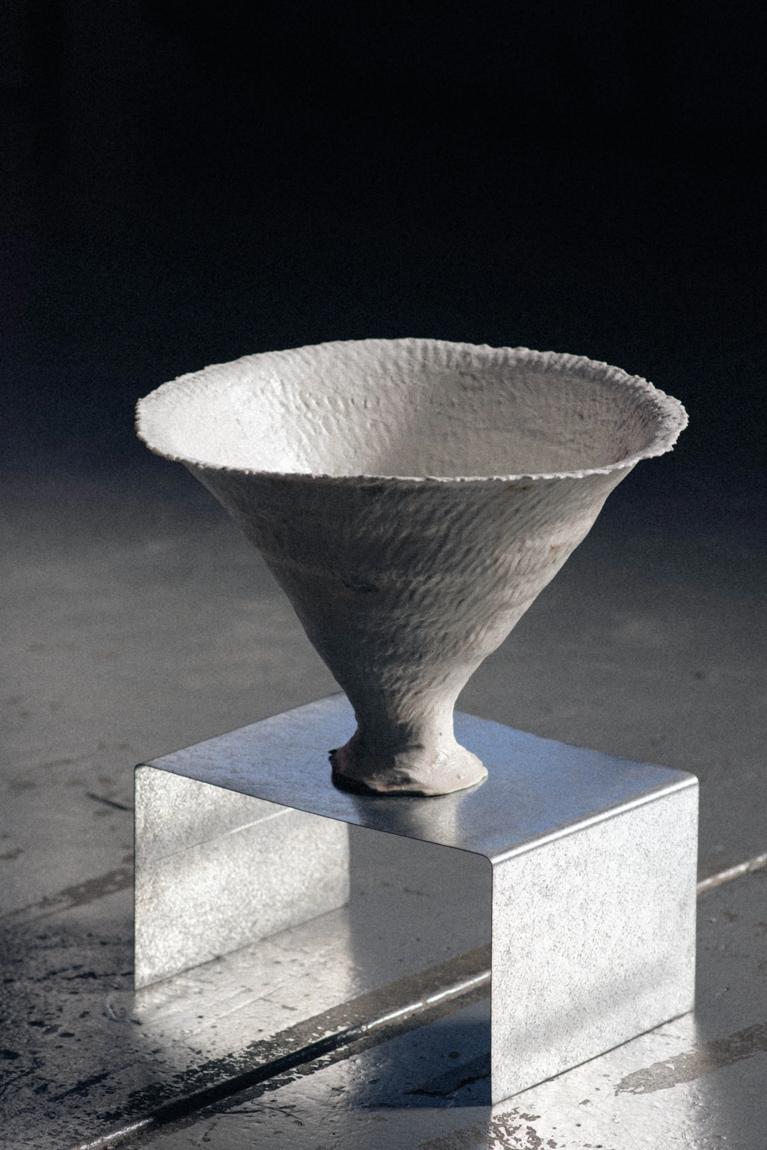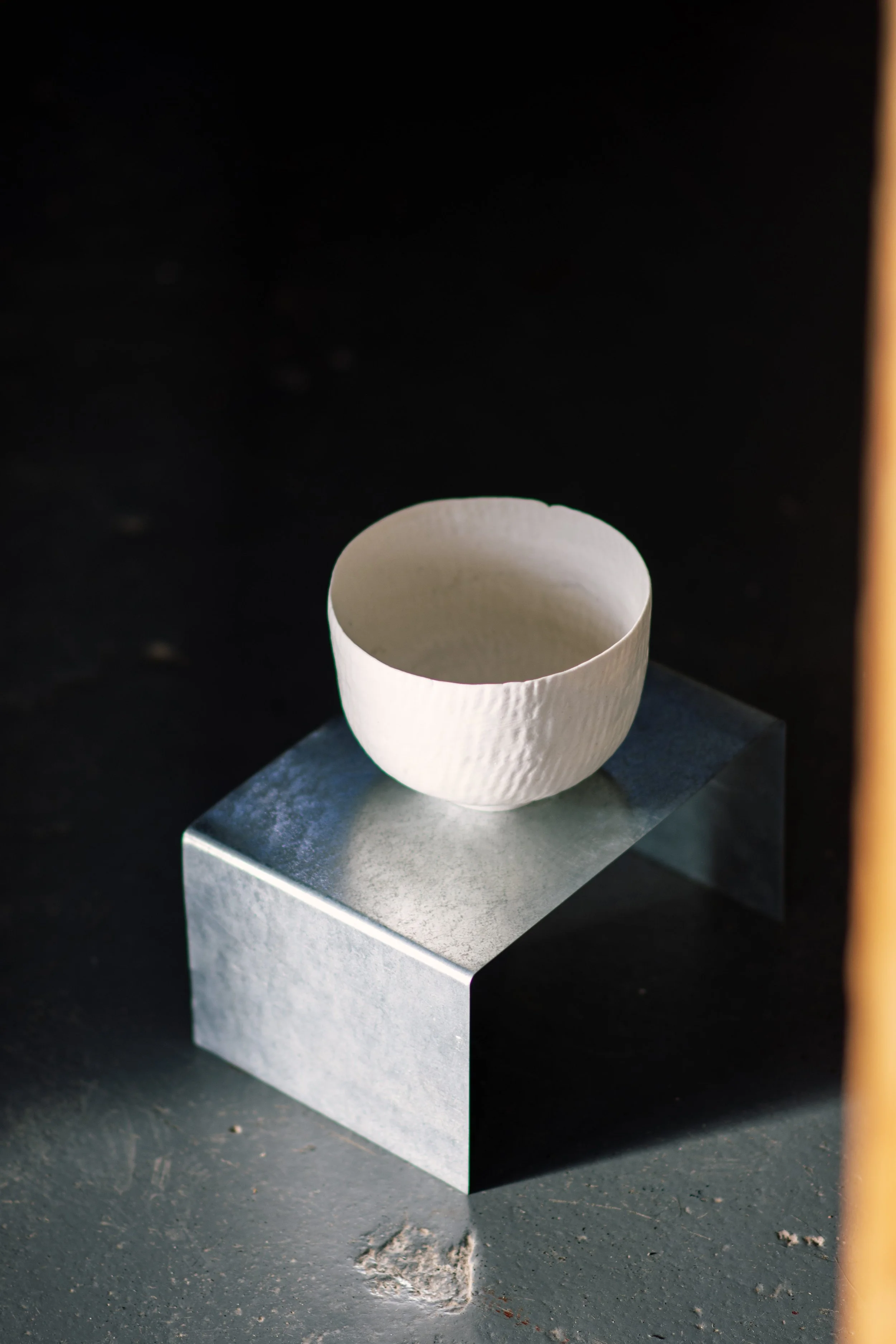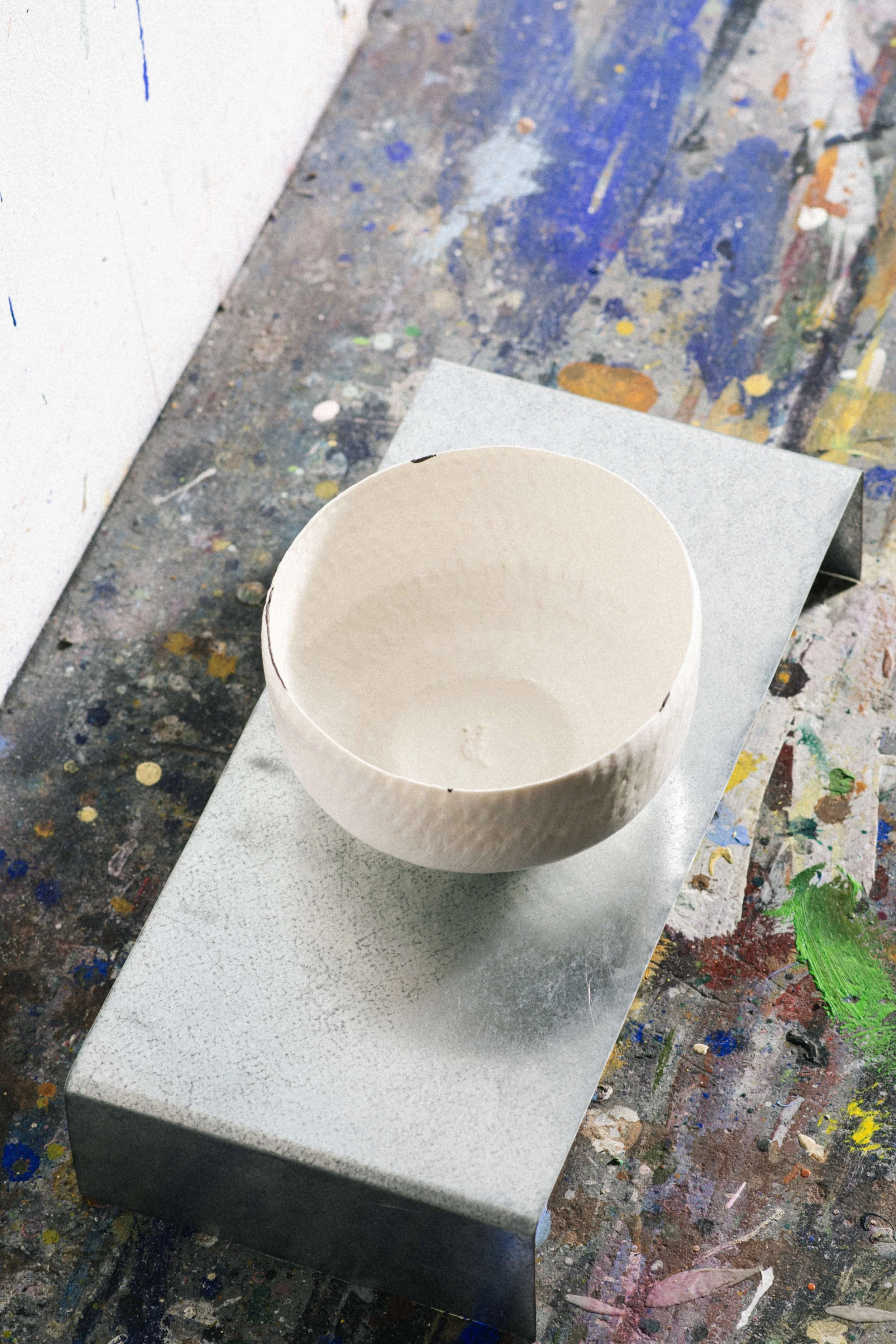 The edges of the work are reconstructed through a deliberately pinched process, leaving the rim raw and sharpen intention and creation.